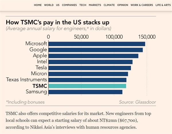 ๋๋ค. ๊ธฐ์ฌ์๋ TSMC์ ์ฐ๋ด์ด ๋ฎ๋ค๋ ๊ฑธ ๋ณด์ฌ์ฃผ๊ธฐ ์ํด ๋ฏธ๊ตญ IT ๋๊ธฐ์